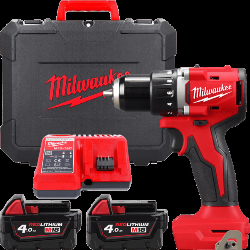 Дриль-шуруповерт акумуляторний безщітковий M18 BLDDRC-402C, крутний момент 60 Нм MILWAUKEE (+ заряд.пристрій, 2 акум., HD кейс)