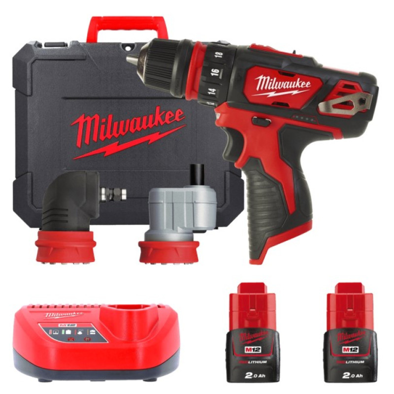 Дриль-шурупокрут акумуляторний MILWAUKEE, M12 BDDXKIT-202C (+ заряд.пристрій, 2 акум.Х 2Аг, 3 насадки, HD кейс)