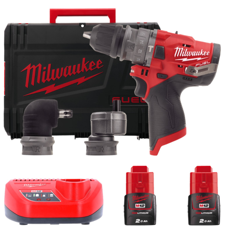 Дриль-шурупокрут з ударом акумуляторний MILWAUKEE, M12 FPDXKIT-202X, 44Нм, (+ заряд.пристрій, 2 акум., знімний патрон, 2 насадки