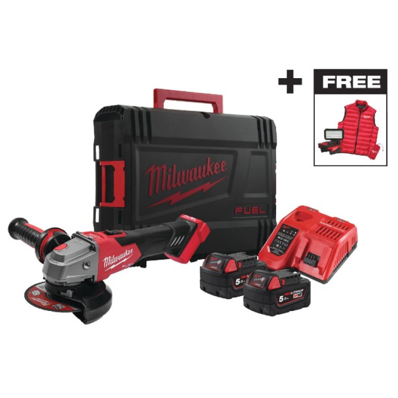 Шліфмашина кутова акумуляторна MILWAUKEE, M18 FSAG125XBMC-502X (ЗП+2ак.Х5Аг+HDкейс) + M18 ALIS-0+жилетка