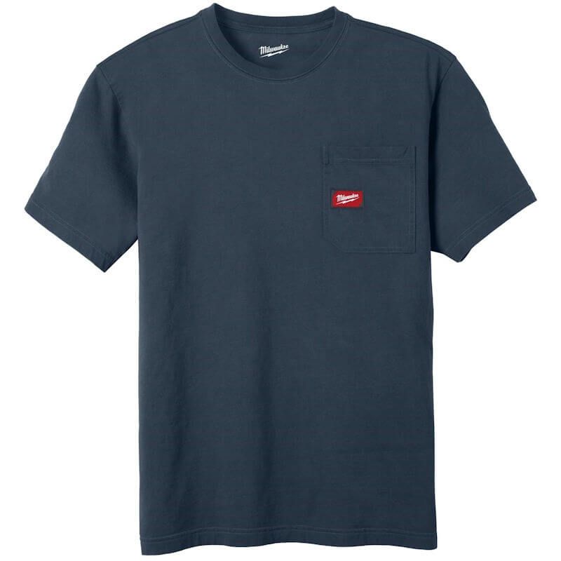 Футболка MILWAUKEE WTSSBLU-XXL, з карманом та коротким рукавом, синя, (розмір XXL)
