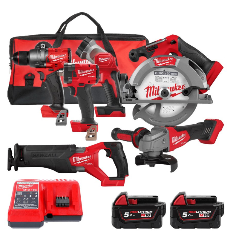 Набір з 6 інструментів безщіткових акумуляторних M18 FPP6H3-502B MILWAUKEE (дриль-шуруповерт M18 FPD3-0X, гайкокрут M18 FIW2F12-