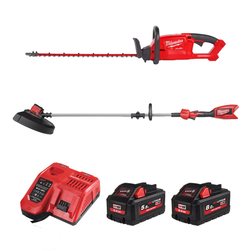 У комплект входять: Безщітковий акумуляторний кущоріз Milwaukee M18 CHT-0 18 В Безщітковий триммер Milwaukee M18 BLLT-0 18V Акумулятор Milwaukee M18 високої потужності 5,5 Аг Акумулятор Milwaukee M18 високої потужності 8,0 Аг Швидке зарядне пристрій Milwaukee M12-M18 акумуляторні кущорізи M18 CHT Безщітковий двигун Milwaukee® POWERSTATE™ забезпечує довший термін служби та на 20% більше потужності Інтелектуальна система захисту інструментів REDLINK PLUS™ i аккумулятор від перевантаження Потужність для зрізання 20 мм гілок Лезо 600 мм забезпечує більший радіус дії та кращу ефективність роботи. До 2 годин безперервна робота з аккумулятором M18™ 9,0 Ач До 30% швидше, ніж інші аналогічні бездротові пристрої Гнучка система акумуляторів гарантовано працює зі всіма акумуляторами Milwaukee® M18™ Три роки гарантії від виробника після реєстрації пристрою. Акумуляторний триммер M18 BLLT Безщітковий безщітковий триммер M18™ має потужність прорізати густий підлісок і досягає повної продуктивності менше ніж за 1 секунду Працює до 4600 об/хв у першому режимі та 6200 об/хв в іншому режимі 2 налаштування швидкості дозволяють вибирати між високою продуктивністю та продовженим часом роботи Регулювання діаметр різання 35 см - 40 см До 1 години роботи від аккумулятора M18™HIGH OUTPUT™ 8,0 Ач Зручна тримірна головка та регульована ручка забезпечують оптимальний комфорт і контроль. Безщітковий двигун POWERSTATE™ для більшої ефективності, тривалого терміну служби та максимальної потужності Електроніка захисту від перевантаження REDLINK™ в інструменті та акумуляторі забезпечує найкращу в своєму класі довговічність системи Гнучка система акумуляторів сумісна та гарантовано працює зі всіма аккумуляторами MILWAUKEE ® M18™ Акумулятор M18 HB8 8.0Ah Нова революційна технологія батареї HIGH OUTPUT™ забезпечує на 50% більше енергії, ніж інші батареї M18™ REDLITHIUM-ION™ Запатентована система REDLINK™ забезпечує захист аккумулятора в строгих умовах експлуатації та забезпечує оптимальну продуктивність. Нагрівається на 50% менше, ніж інші батареї Milwaukee® REDLITHIUM-ION™ , що дозволяє операторам працювати інтенсивніше та довше, ніж будь-коли раніше, з акумуляторними інструментами. Нові батареї HIGH OUTPUT™ дозволяють повністю відмовитися від дротових інструментів на робочому місці, забезпечуючи більшу годину роботи, ніж будь-коли. Міцний металевий корпус аккумулятора з ударостійкими сепараторами запобігає пошкодженню від вібрації та падінь Вбудований індикатор заряду допомагає користувачеві максимально підвищити ефективність роботи. Індивідуальний моніторинг елемента забезпечує оптимальне заряджання та розряджання для максимального терміну служби Сумісний із усіма інструментами серії M18™ Акумулятор M18 HB5.5 5.5Ah Нова революційна технологія батареї HIGH OUTPUT™ забезпечує на 50% більше енергії, ніж інші батареї M18™ REDLITHIUM-ION™ Запатентована система REDLINK™ забезпечує захист аккумулятора в строгих умовах експлуатації та забезпечує оптимальну продуктивність. Нагрівається на 50% менше, ніж інші батареї Milwaukee® REDLITHIUM-ION™ , що дозволяє операторам працювати інтенсивніше та довше, ніж будь-коли раніше, з акумуляторними інструментами. Нові батареї HIGH OUTPUT™ дозволяють повністю відмовитися від дротових інструментів на робочому місці, забезпечуючи більшу годину роботи, ніж будь-коли. Міцний металевий корпус аккумулятора з ударостійкими сепараторами запобігає пошкодженню від вібрації 