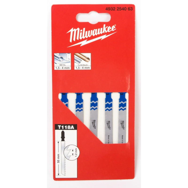 Полотна для лобзика T118A MILWAUKEE, 55мм/ крок зубу 1,2мм, (5шт), (універсальні)