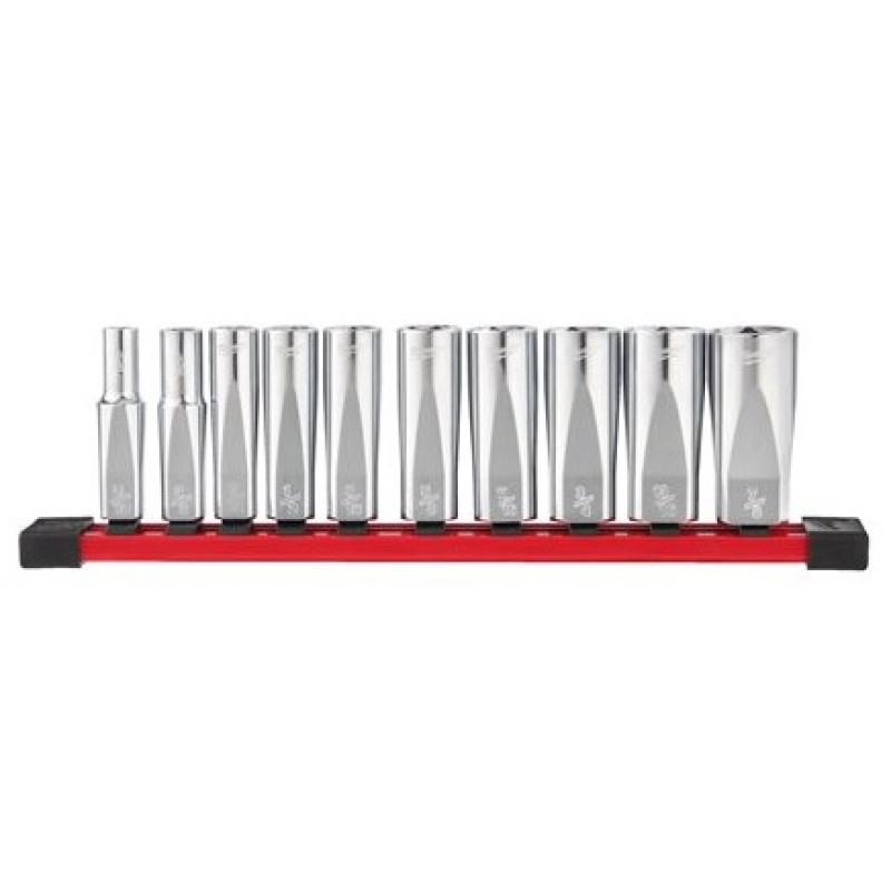 Набір головок торцевих дюймових 3/8'' MILWAUKEE, подовжених на планці (10шт)