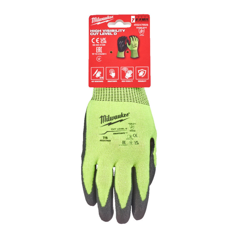 Рукавиці Hi-Vis сигнальні MILWAUKEE, з опором порізам 4/D рівня, розмір 7/S