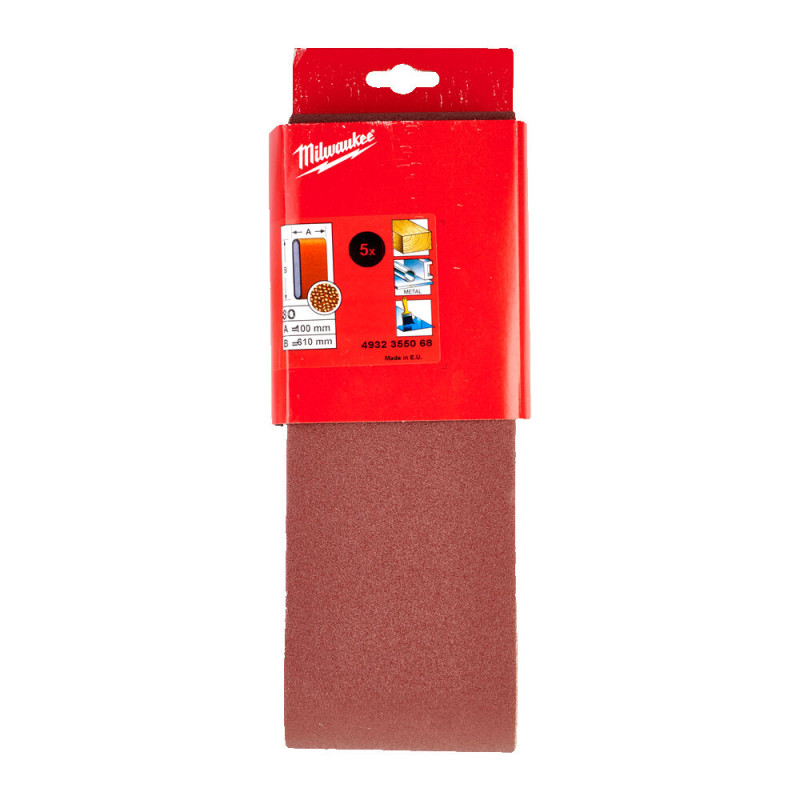 Стрічка шліфувальна абразивна MILWAUKEE, 100х610, зерно 80 (5шт)
