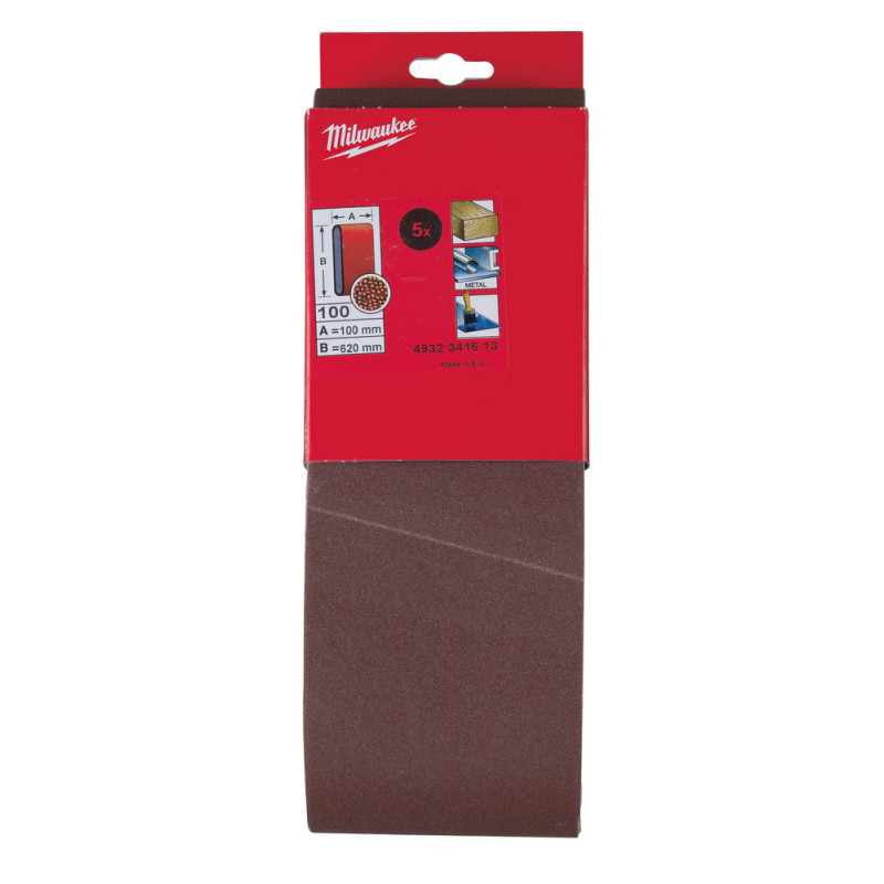Стрічка шліфувальна абразивна MILWAUKEE, 100х620, зерно 100 (5шт)