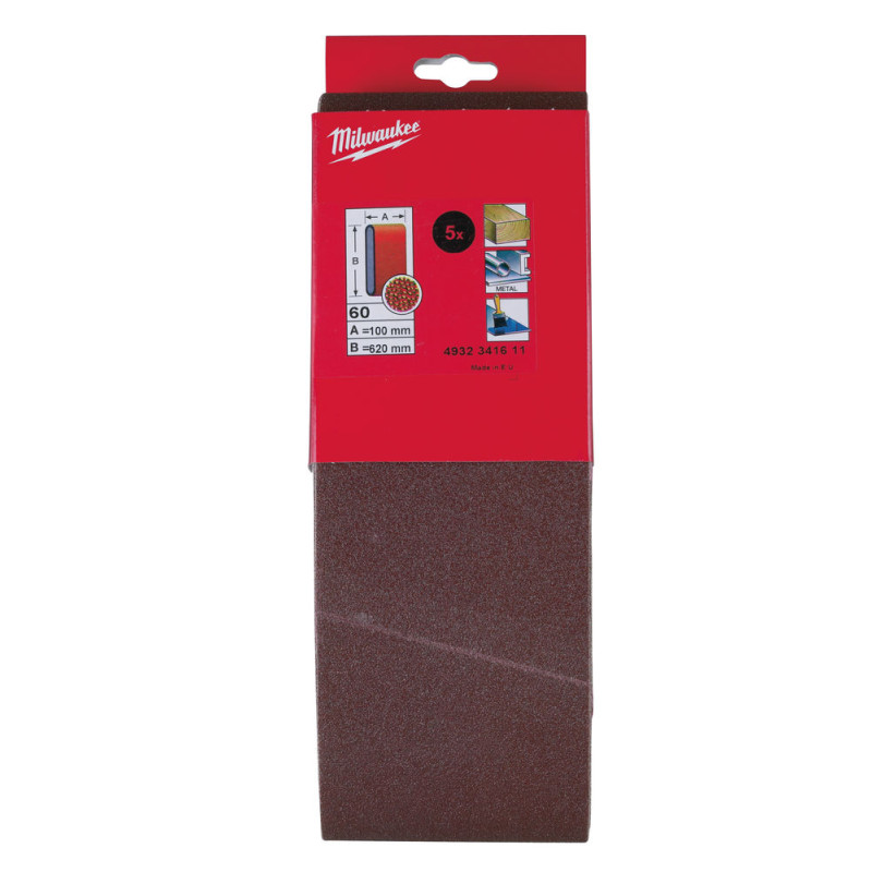 Стрічка шліфувальна абразивна MILWAUKEE, 100х620, зерно 60 (5шт)