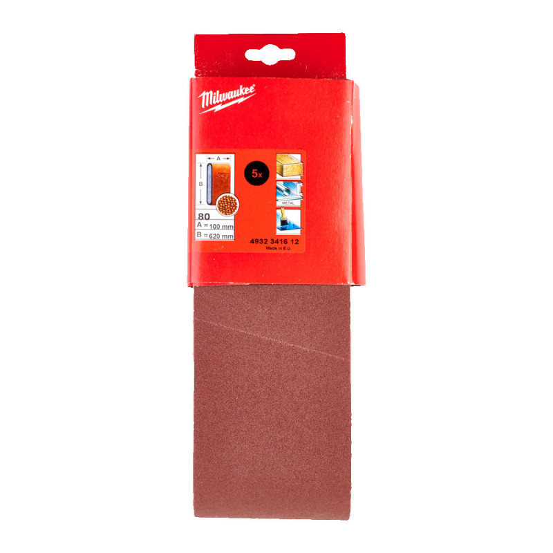 Стрічка шліфувальна абразивна MILWAUKEE, 100х620, зерно 80 (5шт)
