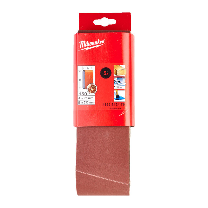 Стрічка шліфувальна абразивна MILWAUKEE, 75х533, зерно 150 (5шт)