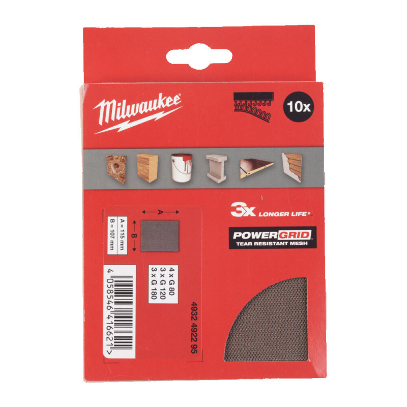Набір сіток шліфувальних PG Mesh HL MILWAUKEE, 115х107мм, (10шт)
