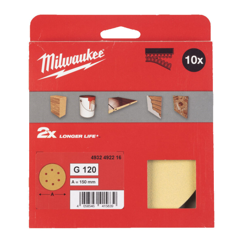 Папір шліфувальний HP MILWAUKEE Ø150/6 HL, зерно 120, (10шт)