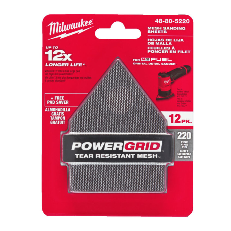 Сітка шліфувальна PG Mesh HL MILWAUKEE, 67х92мм, зерно 220, (12шт+подкладка) (для M12 FDSS)