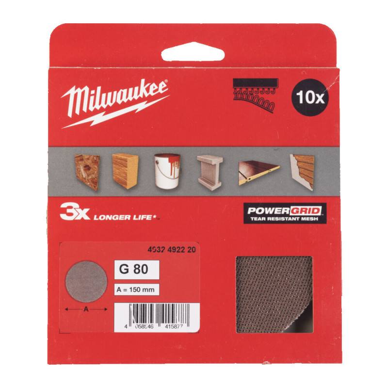 Сітка шліфувальна PG Mesh HL MILWAUKEE, Ø150мм, зерно 80, (10шт)