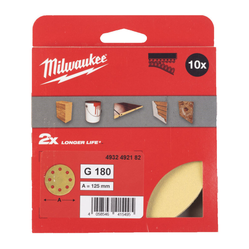 Шліфувальний папір HP MILWAUKEE Ø125/8 HL, зерно 180, (10шт)