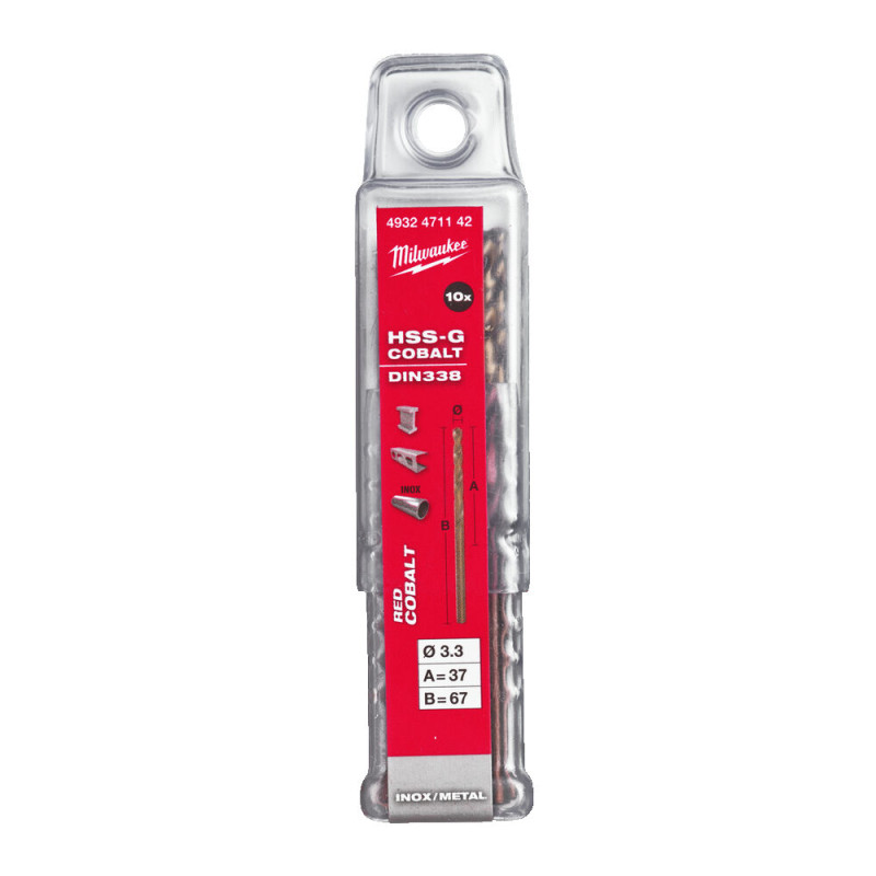 Свердло по металу HSS-Co MILWAUKEE, DIN338, дыаметр 3,3х67х37мм, (10шт)