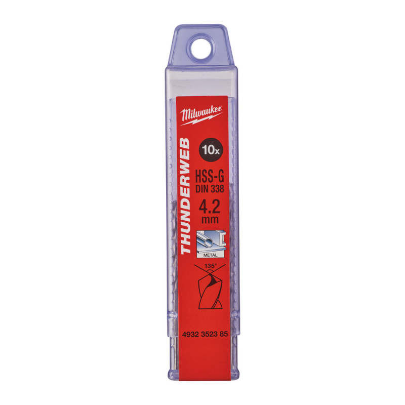 Свердло по металу THUNDERWEB HSS-G MILWAUKEE DIN338, діаметр 4,2 x 75 мм (10шт), пластикова коробка